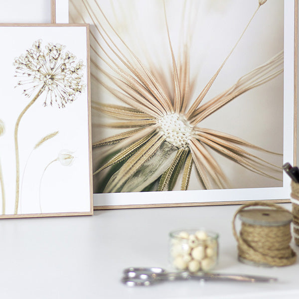 Ajoutez une touche de poésie avec notre impression d'art Pissenlit sur un panneau MDF de 3mm d'épaisseur. Le cadre fin et délicat convient parfaitement à une décoration murale légère. Disponible en tailles variées, vous pouvez accrocher ou poser les différents modèles. Combinez les pour une décoration intemporelle.