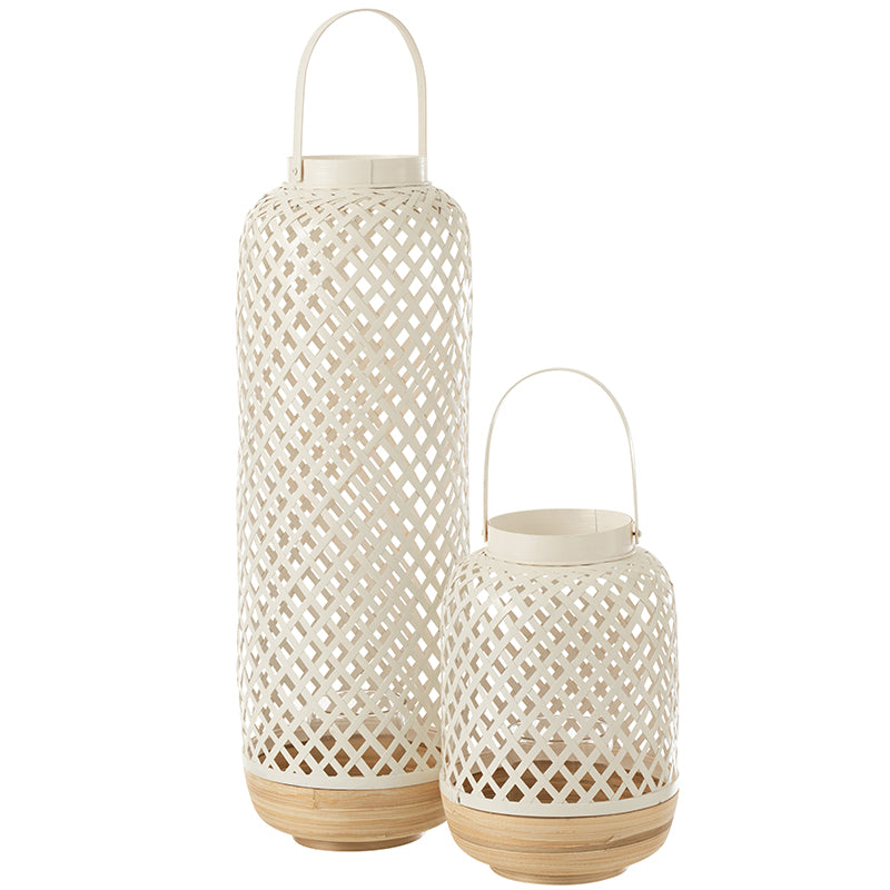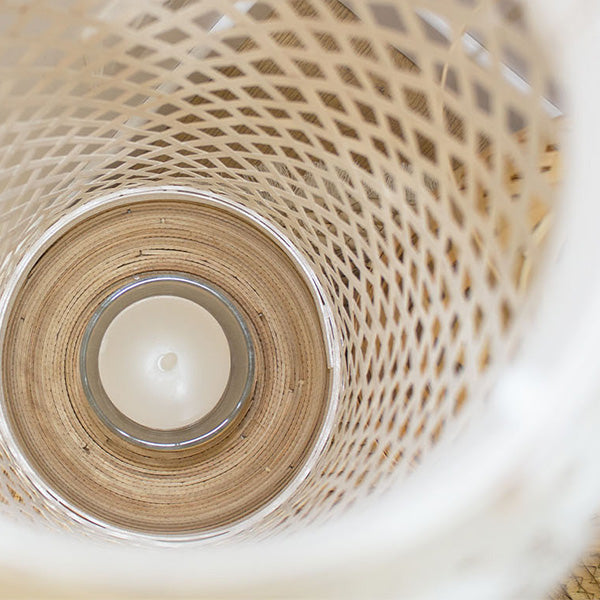 La gamme des lanternes Evi en bambou, disponible en blanc et naturel et en deux tailles, se distingue par sa finesse et sa capacité à créer une ambiance chaleureuse. Le support en verre au centre permet d'intégrer une vraie bougie en toute sécurité ou une bougie LED pour plus de longévité. Parfaites pour illuminer votre intérieur avec élégance, ces lanternes combinent style et fonctionnalité, offrant une touche naturelle et raffinée à n'importe quelle pièce.