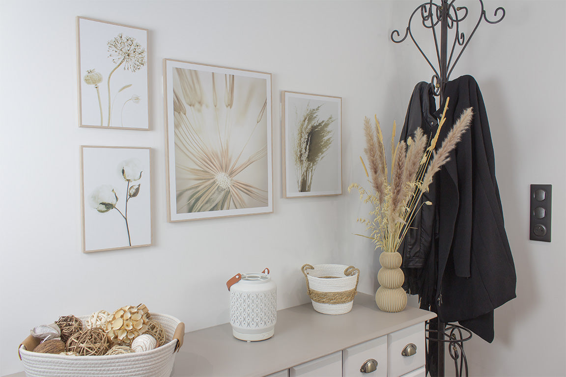 Offrez à votre entrée ou couloir une transformation élégante avec notre assortiment de cadres et impressions très natures, qui ajoutent une touche artistique et rafraîchissante. Pour compléter l'atmosphère et créer un espace accueillant, ajoutez un diffuseur d’huiles essentielles. Ce dernier diffuse un parfum agréable qui enchante les narines et instaure une ambiance zen et cosy. Avec ces éléments, votre entrée devient un véritable havre de paix qui impressionnera vos convives dès leur arrivée. Parfait pour un accueil chaleureux et raffiné !