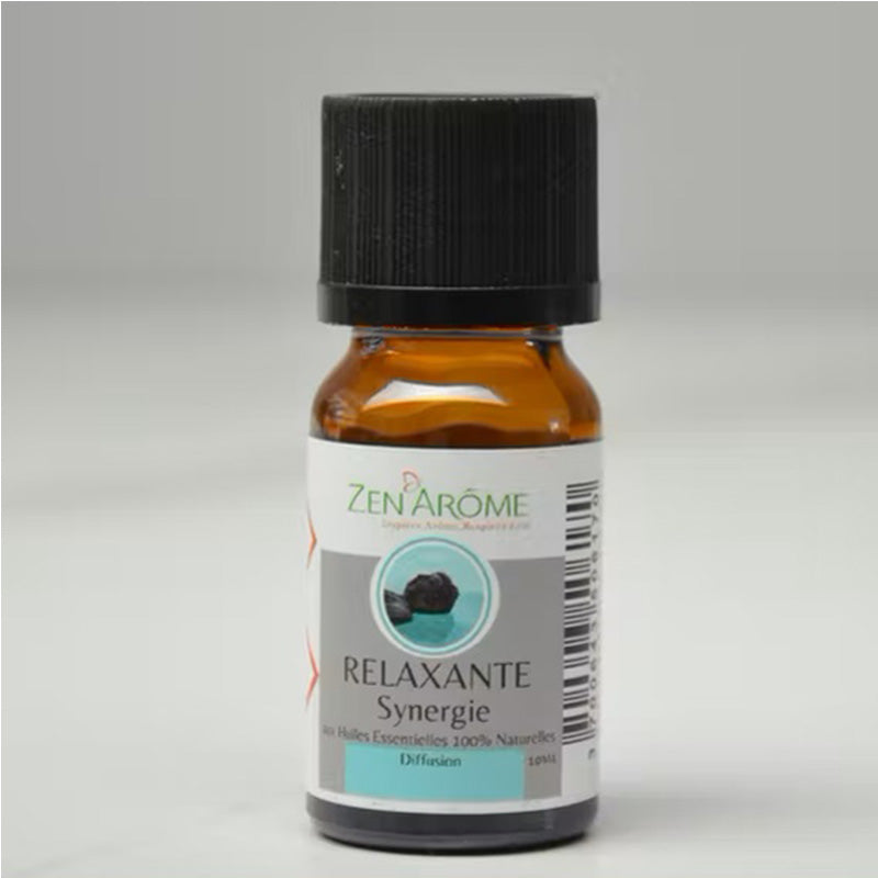 La synergie Relaxante associe des huiles essentielles telles que lavande, eucalyptus, géranium, et citron ou orange. Ces huiles sont reconnues pour leurs propriétés apaisantes, relaxantes et équilibrantes.